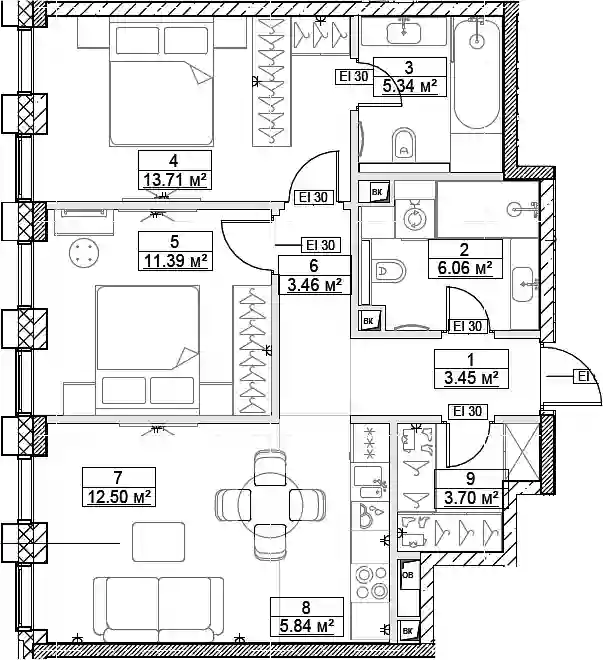 В комплексе предложено множество планировочных решений: в наличии квартиры, как классического типа, так и европланировки. Квартиры сдаются с подчистовой отделкой, высотой потолков 3 м и панорамным остеклением в пол.