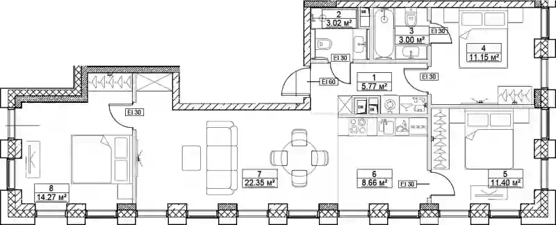 В комплексе предложено множество планировочных решений: в наличии квартиры, как классического типа, так и европланировки. Квартиры сдаются с подчистовой отделкой, высотой потолков 3 м и панорамным остеклением в пол.