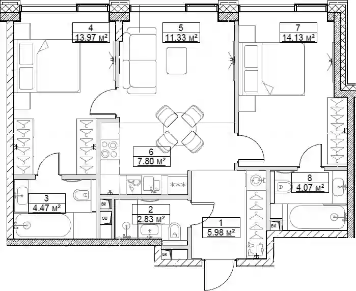 24 126 698 ₽3-к.квартира, 61.8 м², 8 эт.