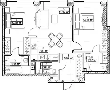 В комплексе предложено множество планировочных решений: в наличии квартиры, как классического типа, так и европланировки. Квартиры сдаются с подчистовой отделкой, высотой потолков 3 м и панорамным остеклением в пол.