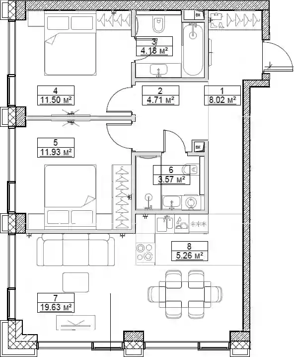 24 303 436 ₽3-к.квартира, 64.82 м², 8 эт.