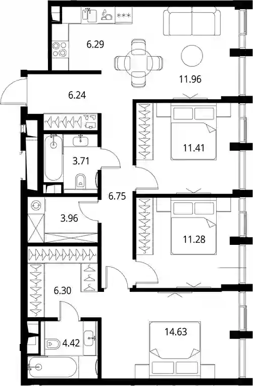 30 285 350 ₽4-к.квартира, 78.7 м², 26 эт.
