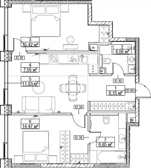 В комплексе предложено множество планировочных решений: в наличии квартиры, как классического типа, так и европланировки. Квартиры сдаются с подчистовой отделкой, высотой потолков 3 м и панорамным остеклением в пол.