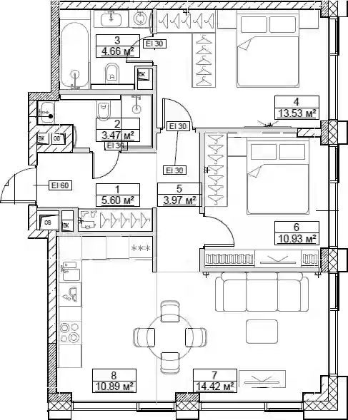 В комплексе предложено множество планировочных решений: в наличии квартиры, как классического типа, так и европланировки. Квартиры сдаются с подчистовой отделкой, высотой потолков 3 м и панорамным остеклением в пол.