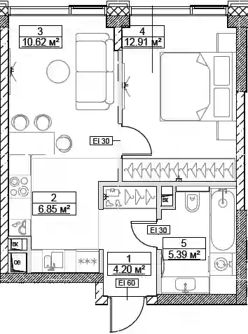 18 616 838 ₽2-к.квартира, 39.57 м², 5 эт.