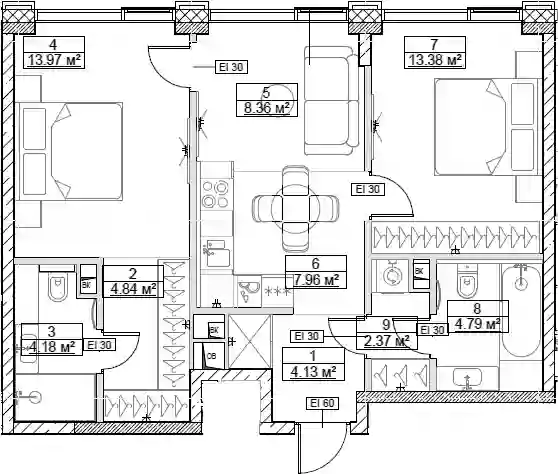 23 803 710 ₽3-к.квартира, 58.45 м², 13 эт.
