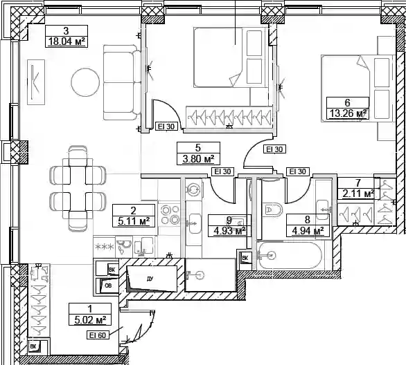 В комплексе предложено множество планировочных решений: в наличии квартиры, как классического типа, так и европланировки. Квартиры сдаются с подчистовой отделкой, высотой потолков 3 м и панорамным остеклением в пол.