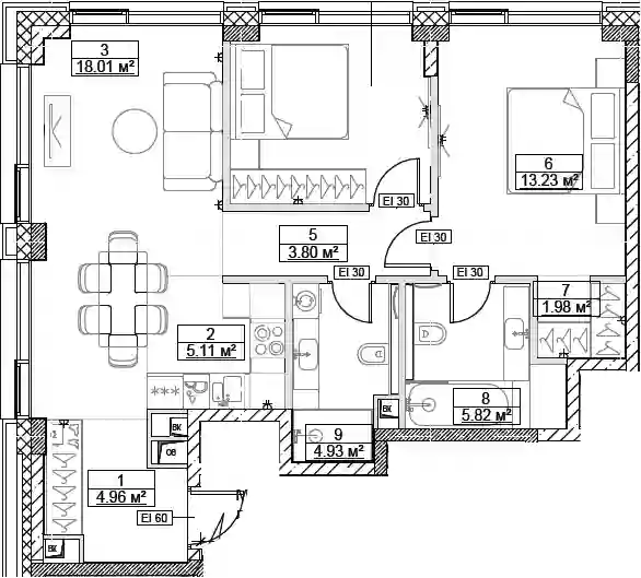 В комплексе предложено множество планировочных решений: в наличии квартиры, как классического типа, так и европланировки. Квартиры сдаются с подчистовой отделкой, высотой потолков 3 м и панорамным остеклением в пол.