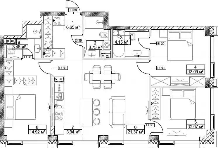В комплексе предложено множество планировочных решений: в наличии квартиры, как классического типа, так и европланировки. Квартиры сдаются с подчистовой отделкой, высотой потолков 3 м и панорамным остеклением в пол.