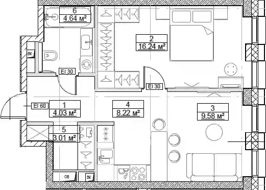 19 237 637 ₽2-к.квартира, 43.62 м², 6 эт.