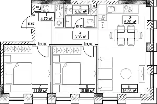 23 614 459 ₽3-к.квартира, 61.6 м², 7 эт.