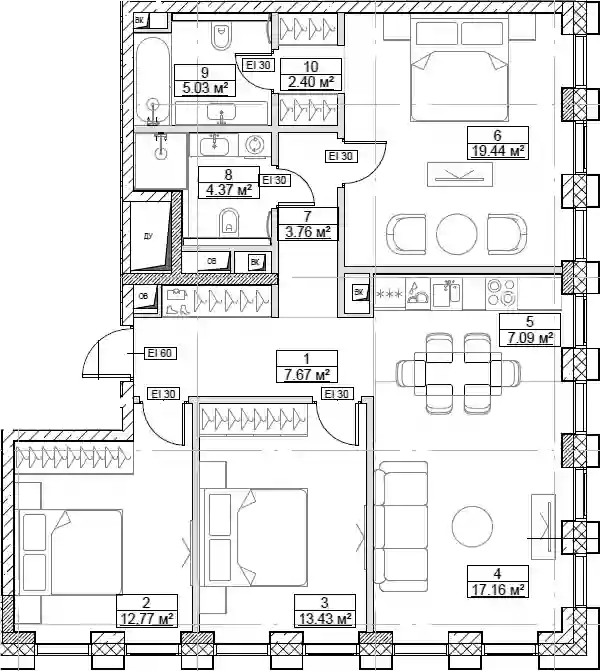 В комплексе предложено множество планировочных решений: в наличии квартиры, как классического типа, так и европланировки. Квартиры сдаются с подчистовой отделкой, высотой потолков 3 м и панорамным остеклением в пол.
