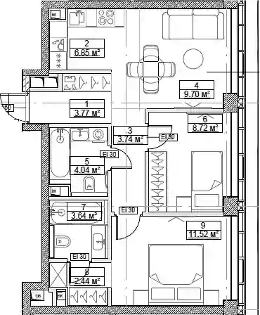 23 816 587 ₽3-к.квартира, 52.54 м², 9 эт.
