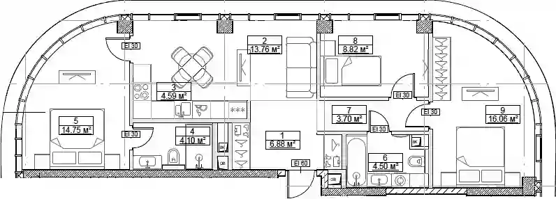 В комплексе предложено множество планировочных решений: в наличии квартиры, как классического типа, так и европланировки. Квартиры сдаются с подчистовой отделкой, высотой потолков 3 м и панорамным остеклением в пол.
