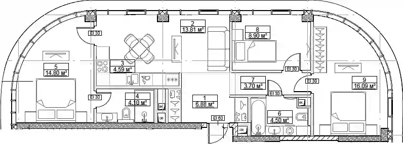 В комплексе предложено множество планировочных решений: в наличии квартиры, как классического типа, так и европланировки. Квартиры сдаются с подчистовой отделкой, высотой потолков 3 м и панорамным остеклением в пол.