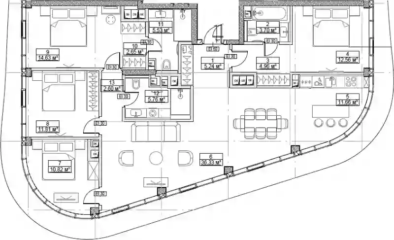 В комплексе предложено множество планировочных решений: в наличии квартиры, как классического типа, так и европланировки. Квартиры сдаются с подчистовой отделкой, высотой потолков 3 м и панорамным остеклением в пол.