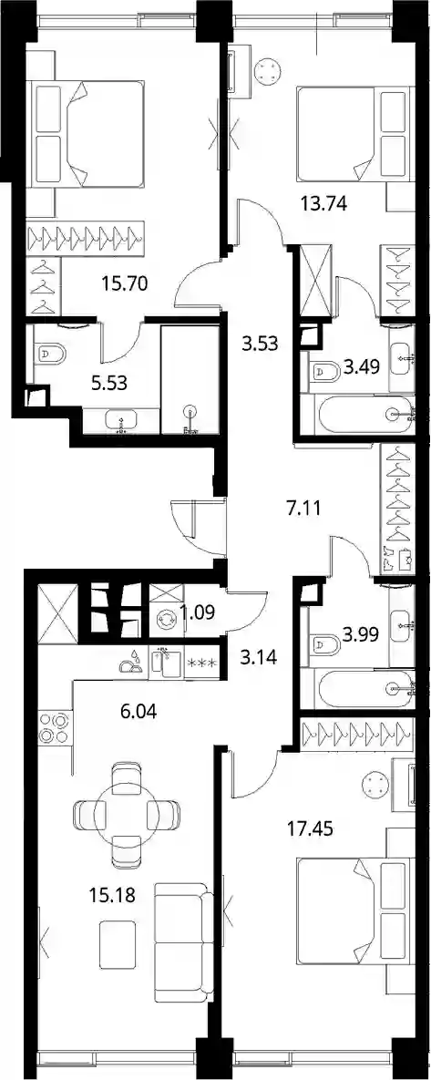 В комплексе предложено множество планировочных решений: в наличии квартиры, как классического типа, так и европланировки. Квартиры сдаются с подчистовой отделкой, высотой потолков 3 м и панорамным остеклением в пол.