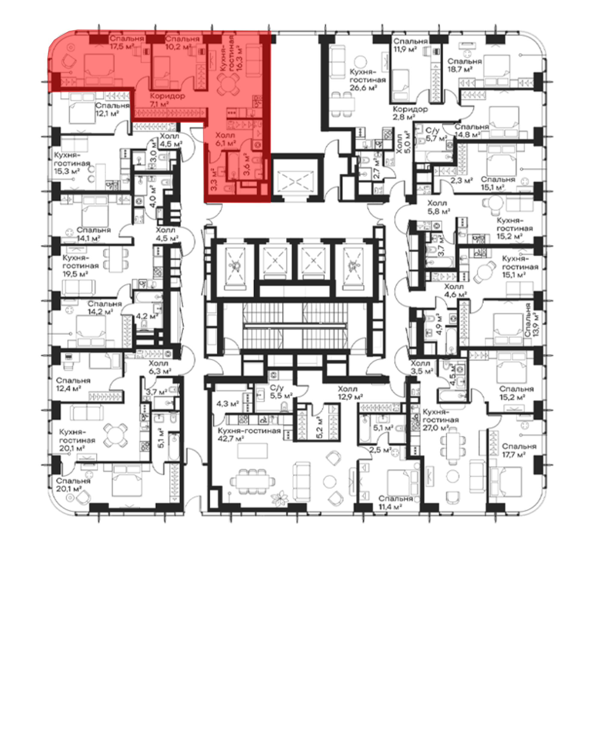 39 584 917 ₽5+к.квартира, 117.8 м², 57 эт.