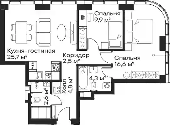 24 302 826 ₽3-к.квартира, 60.15 м², 25 эт.