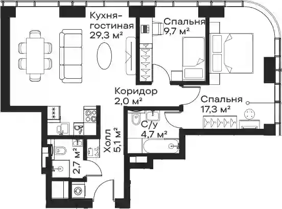 24 762 938 ₽3-к.квартира, 66.2 м², 33 эт.
