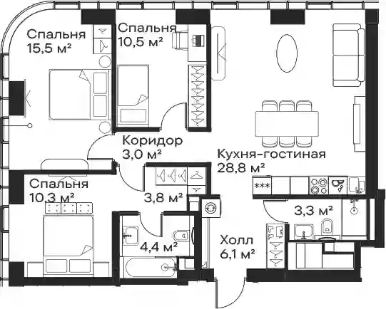 В комплексе предложено множество планировочных решений: в наличии квартиры, как классического типа, так и европланировки. Квартиры сдаются с подчистовой отделкой, высотой потолков 3 м и панорамным остеклением в пол.
