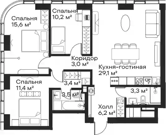 30 517 108 ₽3-к.квартира, 80.63 м², 3 эт.