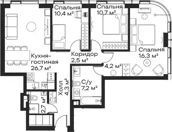 30 285 350 ₽4-к.квартира, 78.7 м², 26 эт.