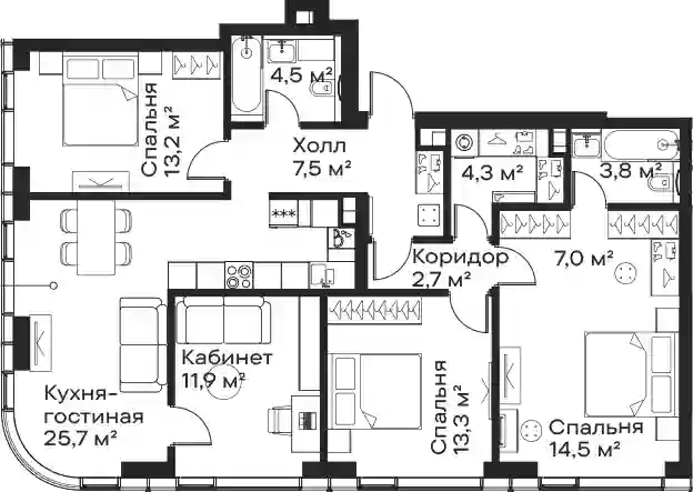 41 507 373 ₽5+к.квартира, 111.3 м², 3 эт.