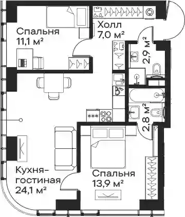 24 404 305 ₽3-к.квартира, 65.9 м², 24 эт.