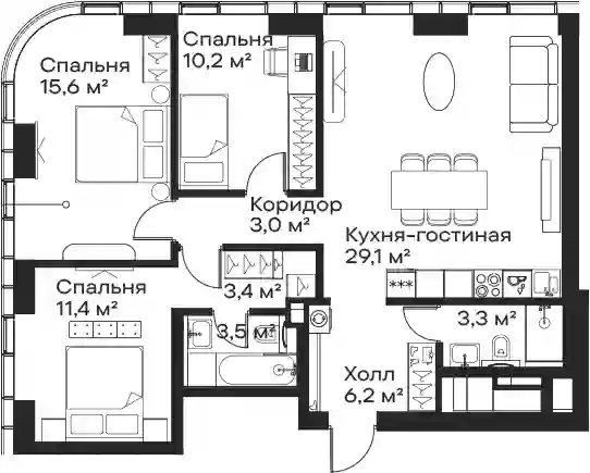 29 514 968 ₽4-к.квартира, 88.6 м², 18 эт.