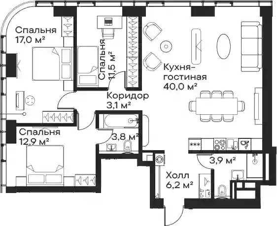 В комплексе предложено множество планировочных решений: в наличии квартиры, как классического типа, так и европланировки. Квартиры сдаются с подчистовой отделкой, высотой потолков 3 м и панорамным остеклением в пол.