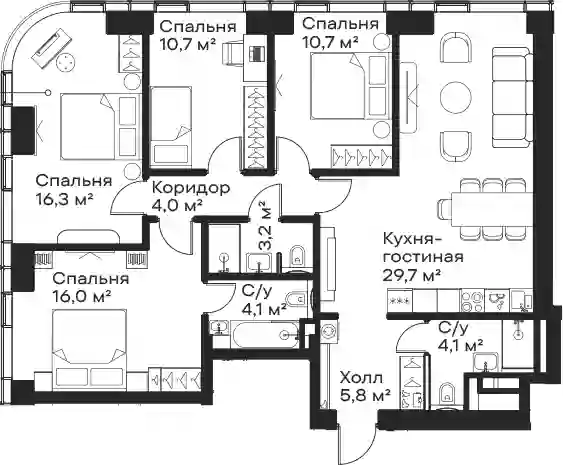 31 073 188 ₽4-к.квартира, 96.3 м², 57 эт.