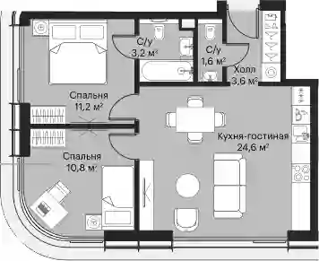 24 955 485 ₽3-к.квартира, 55 м², 35 эт.