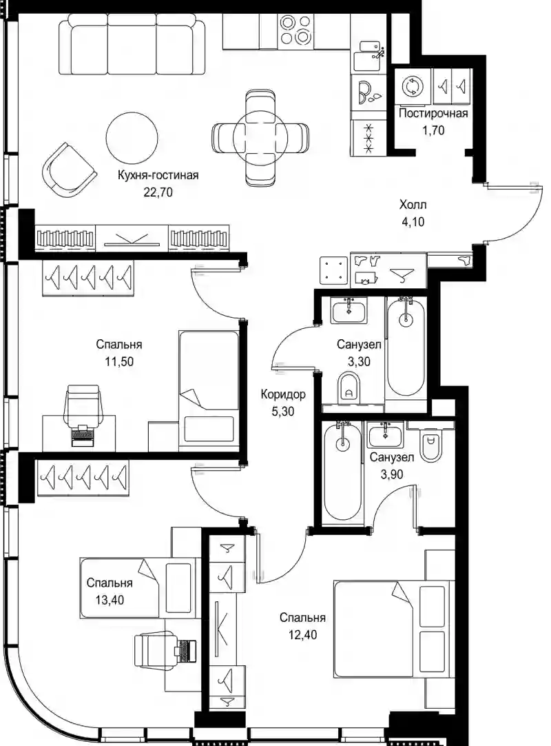 В проекте предложен широкий выбор планировочных решений от студий до 4-комнатных квартир. Есть лоты с кухнями-гостиными, мастер-спальнями, террасами, эркерами, лоджиями и балконами. Все квартиры представлены в подчистовой отделке White box по стандарту MR Base. Из панорамных окон открывается вид на парк и набережную Сходненского канала.