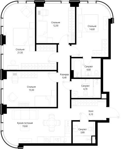 5+к.квартира, 109.3 м², 11 эт. в ЖК Cityzen Корпус 1