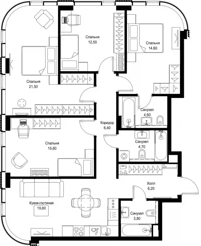 В проекте предложен широкий выбор планировочных решений от студий до 4-комнатных квартир. Есть лоты с кухнями-гостиными, мастер-спальнями, террасами, эркерами, лоджиями и балконами. Все квартиры представлены в подчистовой отделке White box по стандарту MR Base. Из панорамных окон открывается вид на парк и набережную Сходненского канала.