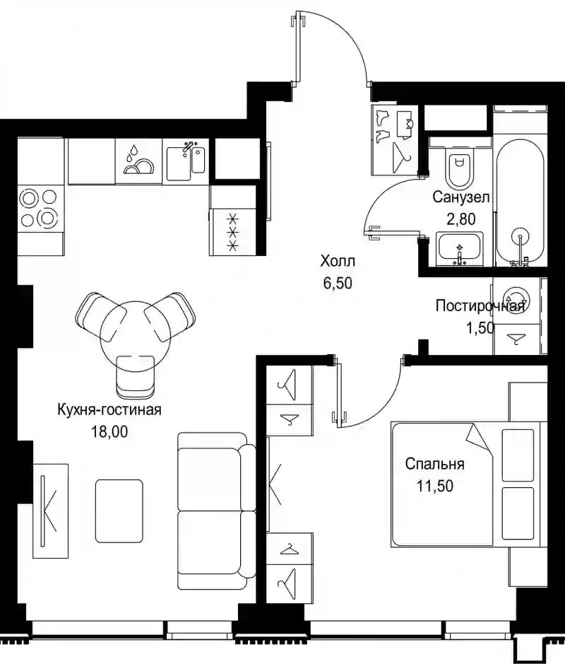 В проекте предложен широкий выбор планировочных решений от студий до 4-комнатных квартир. Есть лоты с кухнями-гостиными, мастер-спальнями, террасами, эркерами, лоджиями и балконами. Все квартиры представлены в подчистовой отделке White box по стандарту MR Base. Из панорамных окон открывается вид на парк и набережную Сходненского канала.