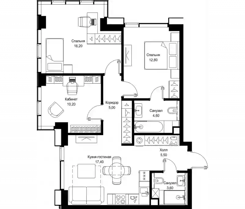 В проекте предложен широкий выбор планировочных решений от студий до 4-комнатных квартир. Есть лоты с кухнями-гостиными, мастер-спальнями, террасами, эркерами, лоджиями и балконами. Все квартиры представлены в подчистовой отделке White box по стандарту MR Base. Из панорамных окон открывается вид на парк и набережную Сходненского канала.