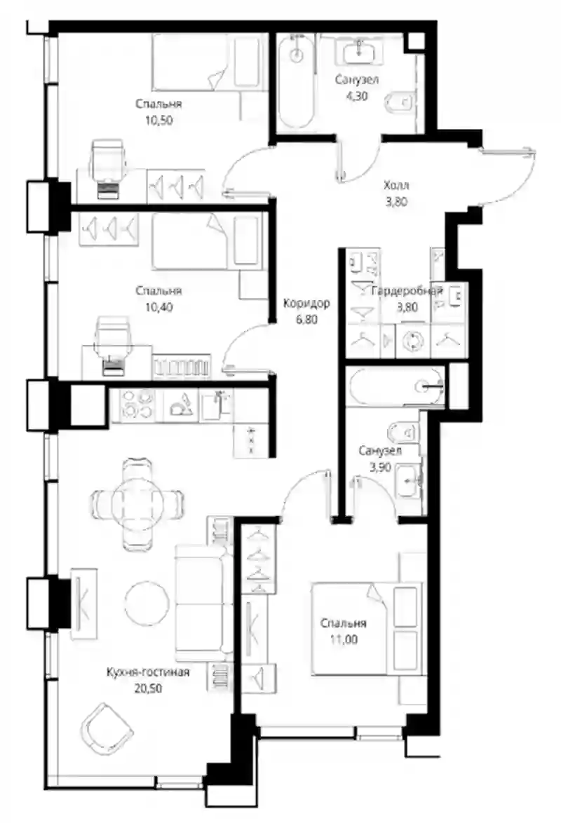 В проекте предложен широкий выбор планировочных решений от студий до 4-комнатных квартир. Есть лоты с кухнями-гостиными, мастер-спальнями, террасами, эркерами, лоджиями и балконами. Все квартиры представлены в подчистовой отделке White box по стандарту MR Base. Из панорамных окон открывается вид на парк и набережную Сходненского канала.
