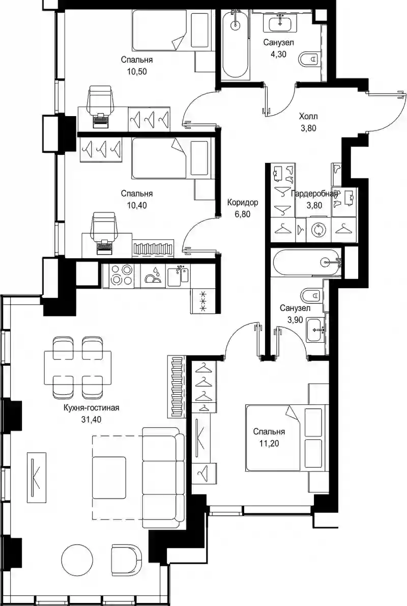 4-к.квартира, 86.1 м², 24 эт. в ЖК Cityzen Корпус 3
