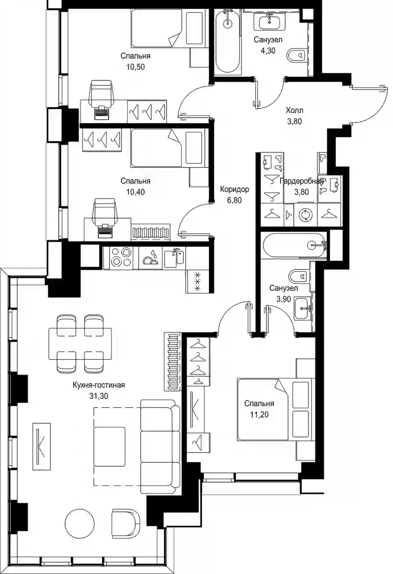 В проекте предложен широкий выбор планировочных решений от студий до 4-комнатных квартир. Есть лоты с кухнями-гостиными, мастер-спальнями, террасами, эркерами, лоджиями и балконами. Все квартиры представлены в подчистовой отделке White box по стандарту MR Base. Из панорамных окон открывается вид на парк и набережную Сходненского канала.