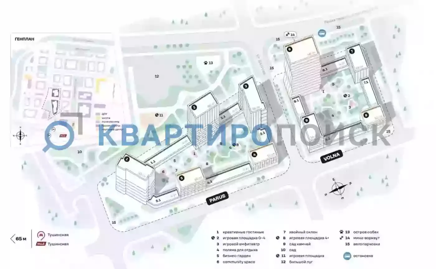 В проекте предложен широкий выбор планировочных решений от студий до 4-комнатных квартир. Есть лоты с кухнями-гостиными, мастер-спальнями, террасами, эркерами, лоджиями и балконами. Все квартиры представлены в подчистовой отделке White box по стандарту MR Base. Из панорамных окон открывается вид на парк и набережную Сходненского канала.