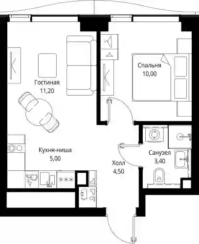 2-к.квартира, 34.1 м², 24 эт. в ЖК Cityzen Корпус 6