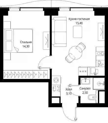 2-к.квартира, 35.3 м², 24 эт. в ЖК Cityzen Корпус 6
