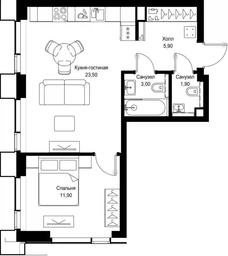 В проекте предложен широкий выбор планировочных решений от студий до 4-комнатных квартир. Есть лоты с кухнями-гостиными, мастер-спальнями, террасами, эркерами, лоджиями и балконами. Все квартиры представлены в подчистовой отделке White box по стандарту MR Base. Из панорамных окон открывается вид на парк и набережную Сходненского канала.