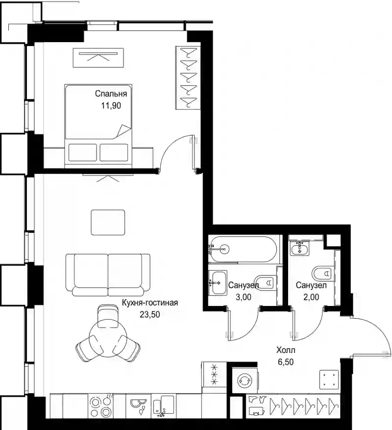 В проекте предложен широкий выбор планировочных решений от студий до 4-комнатных квартир. Есть лоты с кухнями-гостиными, мастер-спальнями, террасами, эркерами, лоджиями и балконами. Все квартиры представлены в подчистовой отделке White box по стандарту MR Base. Из панорамных окон открывается вид на парк и набережную Сходненского канала.