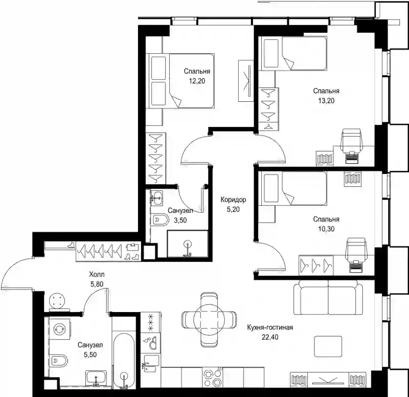 В проекте предложен широкий выбор планировочных решений от студий до 4-комнатных квартир. Есть лоты с кухнями-гостиными, мастер-спальнями, террасами, эркерами, лоджиями и балконами. Все квартиры представлены в подчистовой отделке White box по стандарту MR Base. Из панорамных окон открывается вид на парк и набережную Сходненского канала.