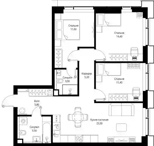 В проекте предложен широкий выбор планировочных решений от студий до 4-комнатных квартир. Есть лоты с кухнями-гостиными, мастер-спальнями, террасами, эркерами, лоджиями и балконами. Все квартиры представлены в подчистовой отделке White box по стандарту MR Base. Из панорамных окон открывается вид на парк и набережную Сходненского канала.