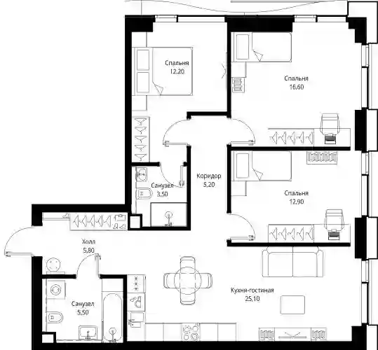В проекте предложен широкий выбор планировочных решений от студий до 4-комнатных квартир. Есть лоты с кухнями-гостиными, мастер-спальнями, террасами, эркерами, лоджиями и балконами. Все квартиры представлены в подчистовой отделке White box по стандарту MR Base. Из панорамных окон открывается вид на парк и набережную Сходненского канала.