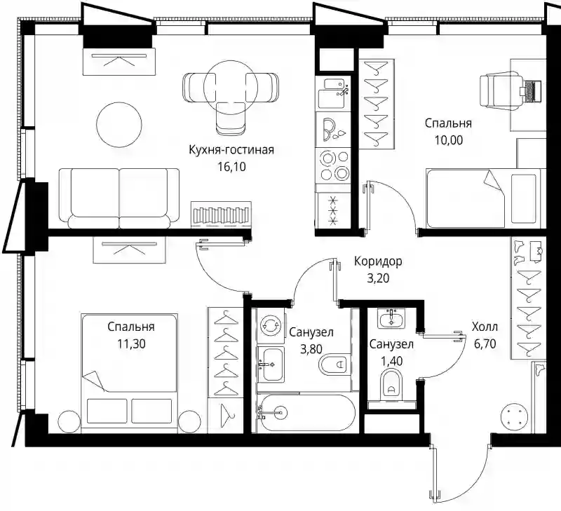В проекте предложен широкий выбор планировочных решений от студий до 4-комнатных квартир. Есть лоты с кухнями-гостиными, мастер-спальнями, террасами, эркерами, лоджиями и балконами. Все квартиры представлены в подчистовой отделке White box по стандарту MR Base. Из панорамных окон открывается вид на парк и набережную Сходненского канала.